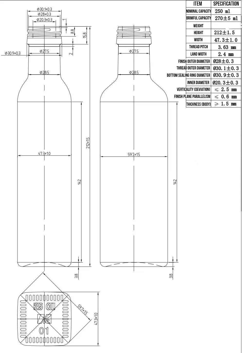 - Độ bền nén của thân chai đạt 2,8MPa và đã đạt chứng nhận thử nghiệm vận chuyển ISTA 3A.
